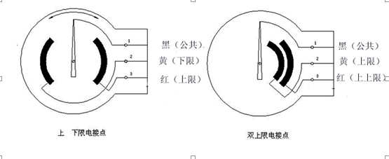 防爆電接點雙金屬溫度計配有電接觸裝置& mdash即機械電接點。當被測介質(zhì)的溫度發(fā)生變化時,自由端的細軸和轉(zhuǎn)向傳動機構帶動指針和動觸頭轉(zhuǎn)動,指示刻度盤上的溫度變化值。當它與固定觸點(上限觸點和下限觸點)接觸或斷開時,電路系統(tǒng)中的繼電器和接觸器起作用,以達到自動控制和報警的目的。